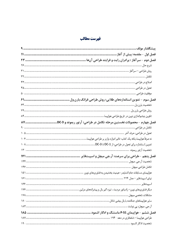توسـعه و تکامـل هواپیما یکی از مهم ترین دستاورهای فنی قرن بیستم میباشـد و بالطبـع تكامـل روش فکـری طراحی هواپیما بخشی از این دستاورد محسوب می شود . محوریت ایـن کـتـاب تبييـن ایـن روش فکـری ، چگونگی به وقـوع پیوستن آن و معرفی برخی از کلیدی تریـن افـرادی اسـت کـه سـبب پیشبرد ایـن تـكـامـل شـدند . داستانی در خصـوص پیشـرفت سـریع فنـاوری ، کـه تـوسـط افـرادی معـدود بـه صـورتی ماهرانـه مـورد استفاده قرار گرفتـه و البتـه تمـام أنهـا متمایز از یکدیگر بوده اند . آنهـا دارای پیش زمینه هـای متنـوع و شخصیتهایی متفاوت بودنـد.امـا بـرخی از شکوهمندترین هواپیماهای تاریخ را طـراحی کردند . چگونـه ایـن عمـل را انجام دادند ؟ توجـه ایـن کـتـاب مستقيما معطـوف بـر خوانندگان اسـت ، هـم فـنی و هم غیرفنی ؛ که می خواهنـد بـه پاسـخ ایـن پرسـش دسـت یابند . اگر شما صرفاً به هواپیما علاقمند هستید و از هیچ گونه پیش زمینـه فـنی برخوردار نمی باشیـد ، ایـن کـتـاب مخصوص شماست . اگر شما مهنـدس یا دانشمند هستید ، باز هم این کتاب متعلق به شماست .