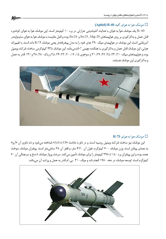کتاب آشنایی با هواپیماهای نظامی جهان روسیه شامل 11 فصل میباشد که در فصل اول و دوم تاریخچه صنعت هوانوردی و در فصول بعدی به معرفی انواع هواپیماهای ساخت شوروی و روسیه فعلی میپردازد. علاوه بر آن در 3 فصل آخر این کتاب انواع موشک های ساخت روسیه،معرفی و کاربرد آنها میپردازد.این کتاب پرطرفدار در سال 97 به چاپ دوم رسید و از کیفیت بسیار خوبی هم از نظر چاپ،کاغذ و کیفیت و هم از نظر محتوا دارد.