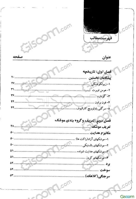 کتاب آشنایی با راکت و موشکهای استراتژیک جهان: این کتاب از 7 فصل تشکیل شده است : فصل1-تاریخچه فصل2-تعریف و گروه بندی موشک فصل3-ساختمان موشک فصل4-سرجنگی فصل 5-پیشران فصل6-آیرودینامیک موشک فصل 7- ثبات و دقت راکت و موشک /لانچرها ،تجهیزات زمینی